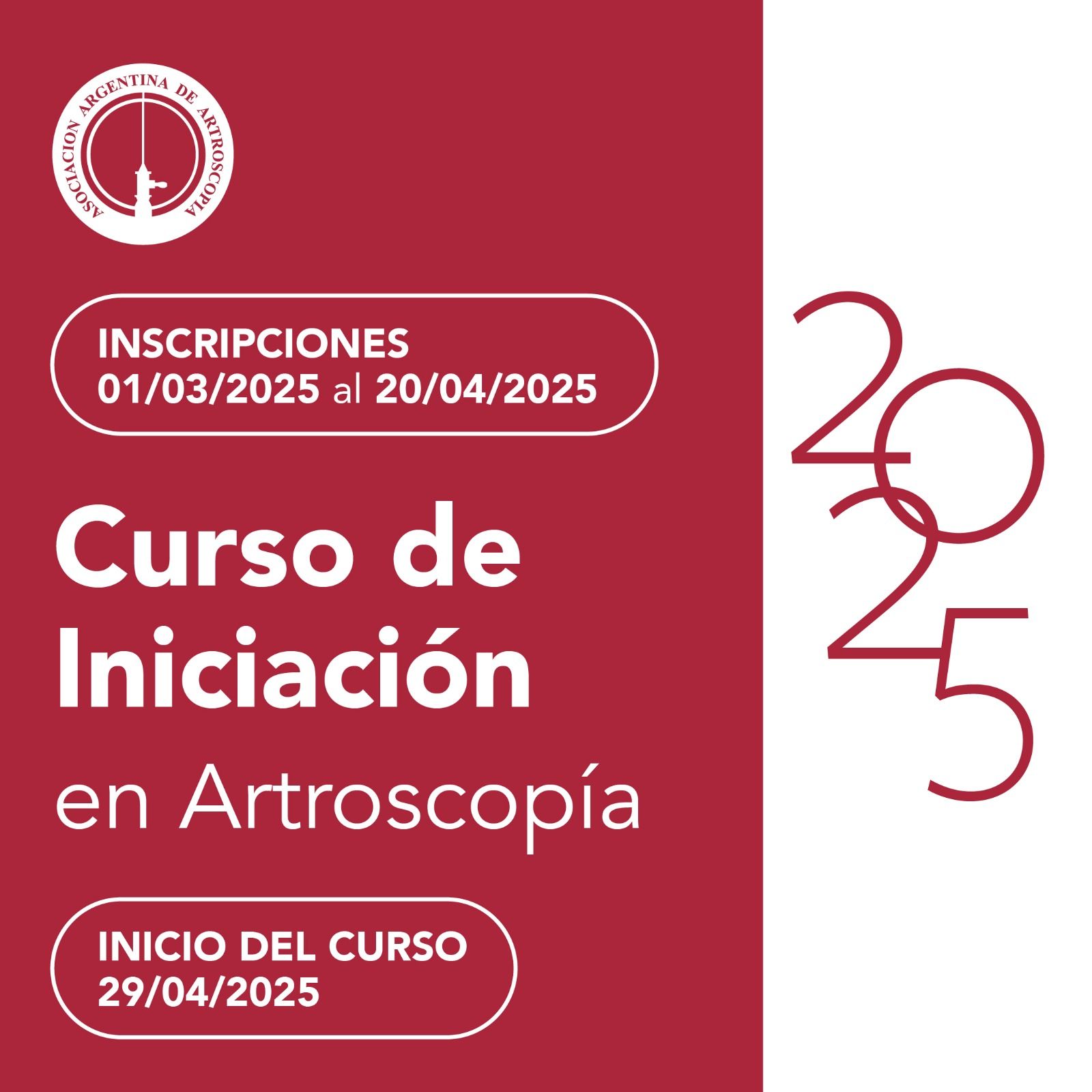 - Dirigido a residentes que estén cursando último año o Jefatura de Residencia, en Servicio de Ortopedia y Traumatología de Hospital y/o Sanatorio y a médicos interesados en Artroscopía.